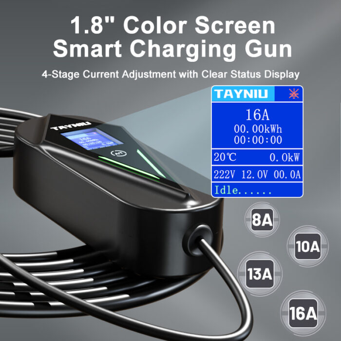 - Intelligent Color Screen and Current Adjustable: Features 1.8″ color screen for clear status display and 4-stage current adjustment (8A/10A/13A/16A) to meet different load needs.