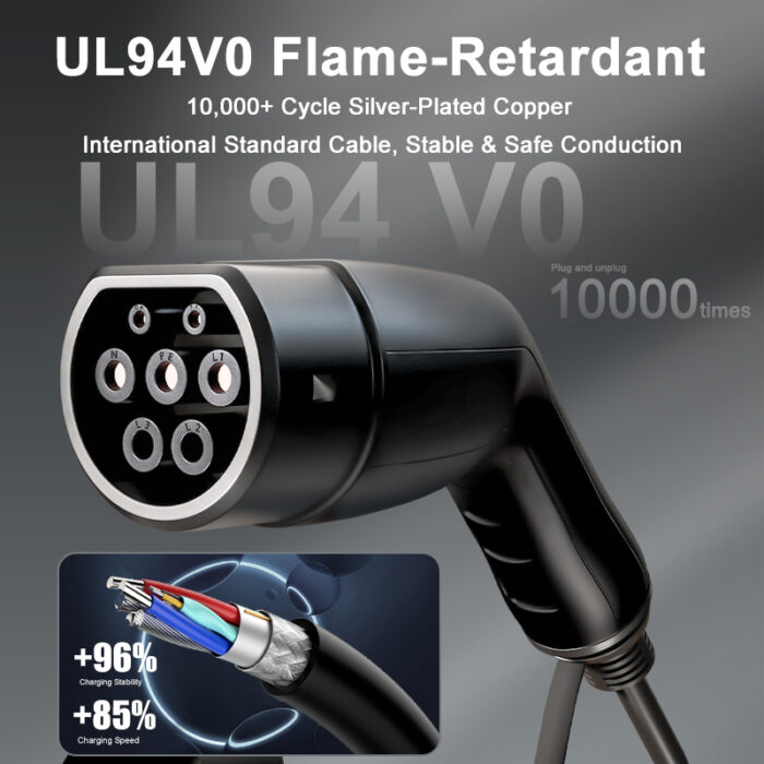 - Durable Construction: Made with UL94V0 flame-retardant material, silver copper for more than 10,000 plug cycles, and international standard cables for stable and safe driving.
